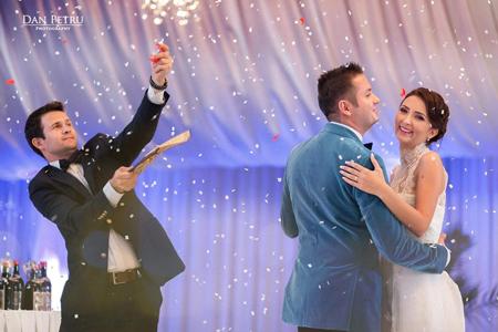 Este un show 100% interactiv, cu multa energie si buna dispozitie, la care invitatii vor lua parte. Dar cel mai important, voi, mirii veti fi in centrul atentiei, iar momentele magice si romantice personalizate voua, va vor aminti si peste ani ce petrecere minunata ati avut.